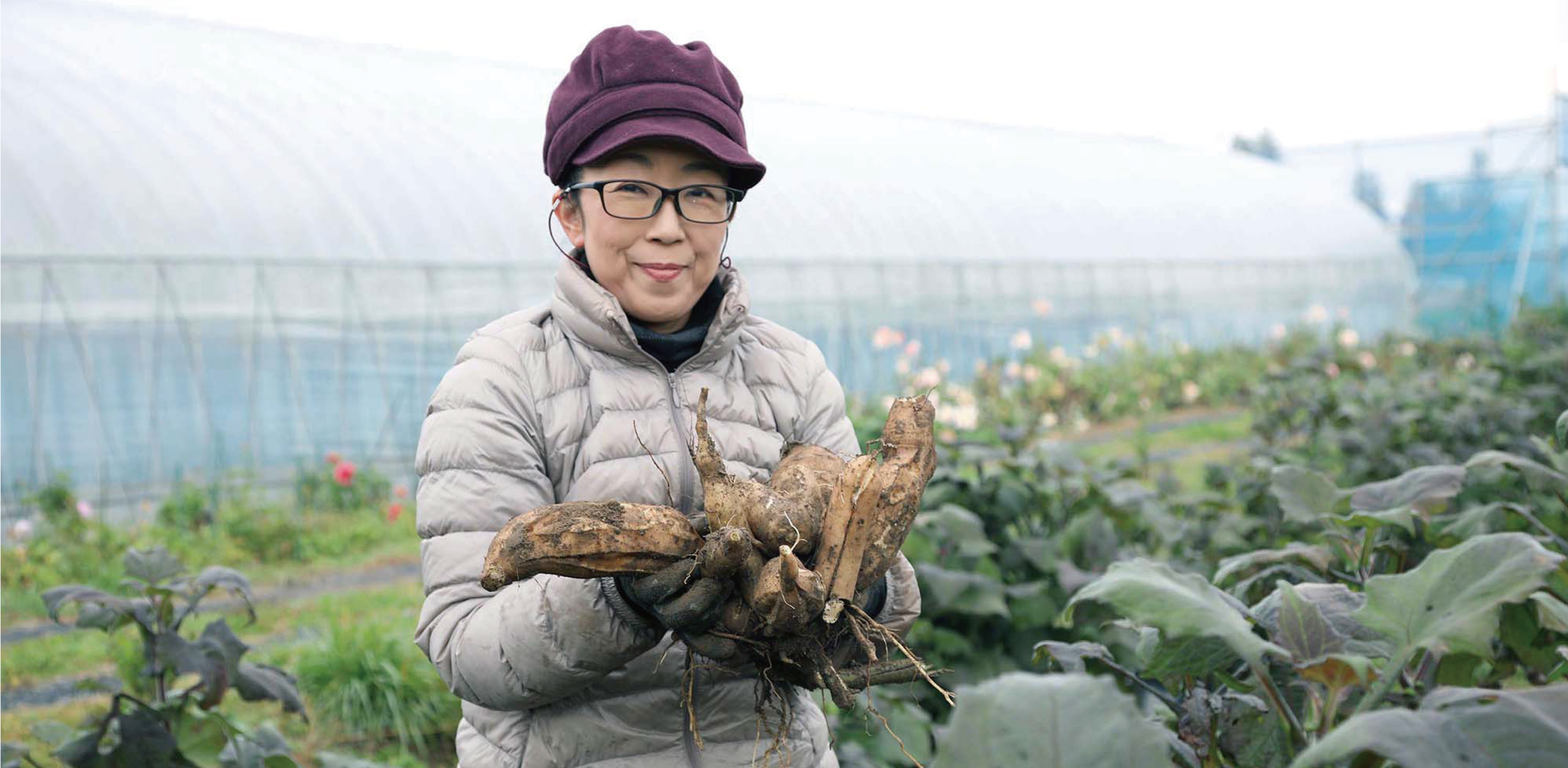 生姜に似たイモ状の塊根に、「天然のインシュリン」と言われる「イヌリン」を豊富に含んでいるキクイモ。生鮮食材としてはメジャーではありませんが、近年非常に栄養価が高いことに大変注目を集めている野菜です。年間を通して管理栽培を行い晩秋より出荷しています。年中食べていただける乾燥キクイモもご用意しています。